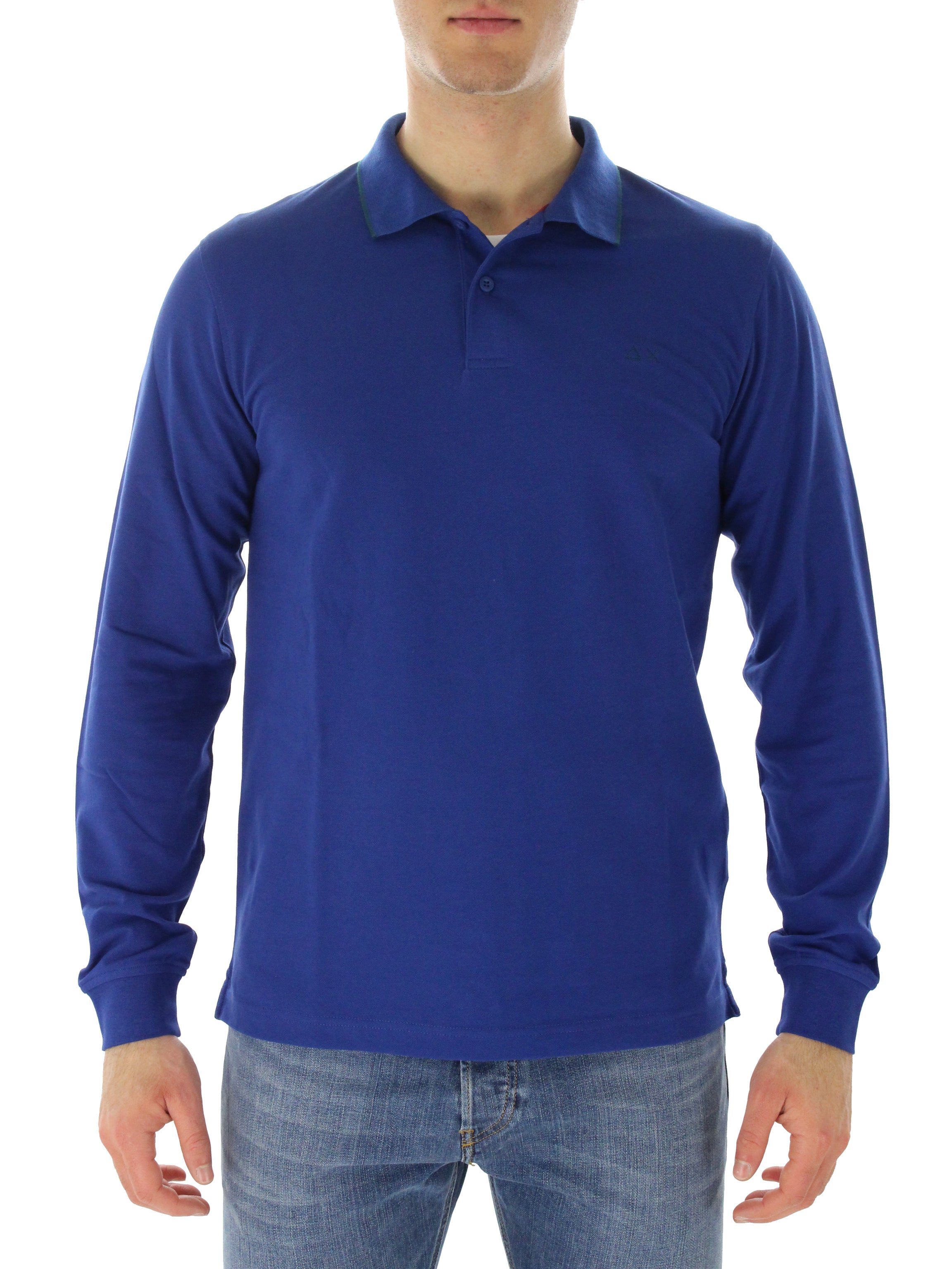 Sun 68 Polo a Maniche Lunghe in Piquet di Cotone Con Logo