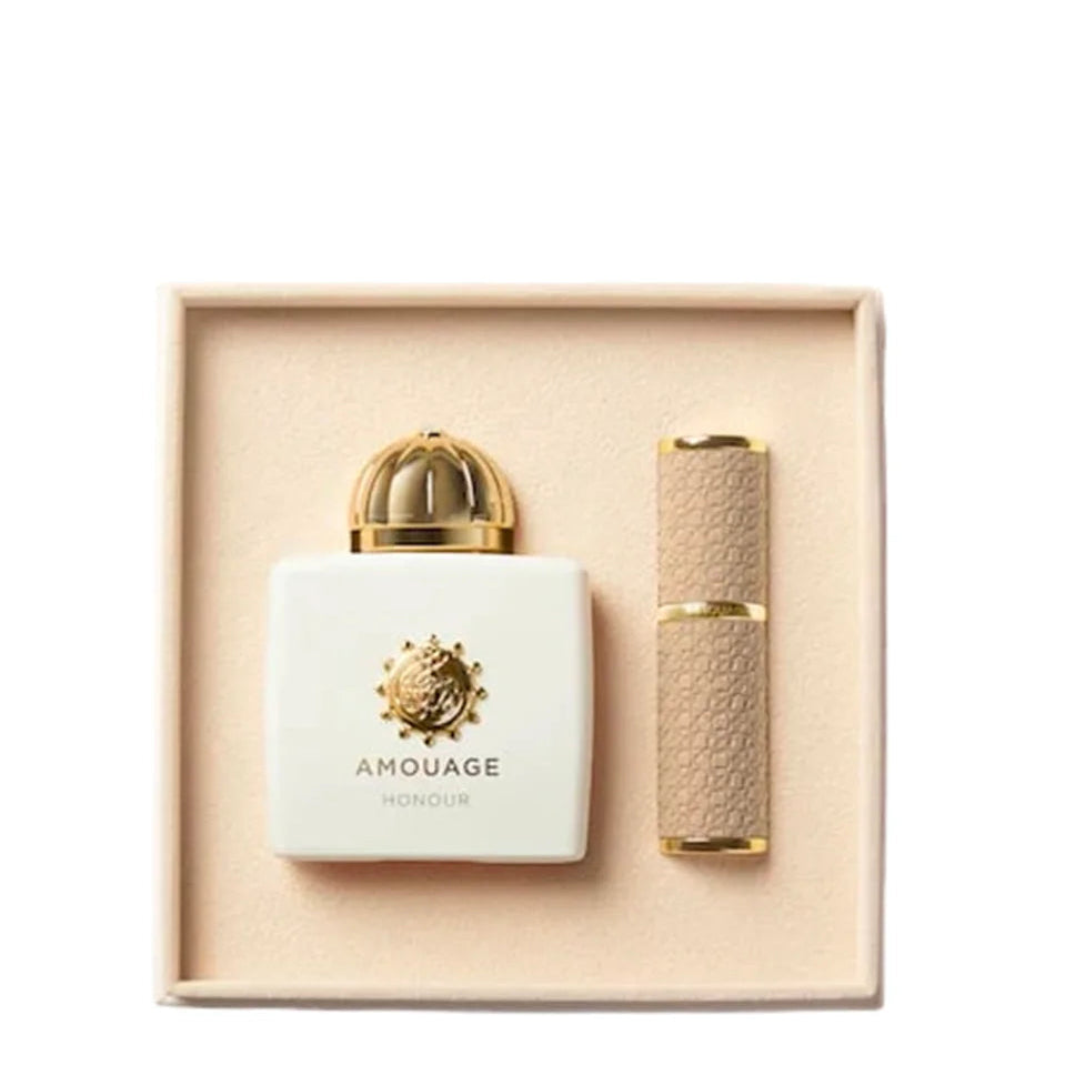 Il cofanetto regalo Amouage Honour Woman è un tributo alla femminilità, ispirato alla tragica storia di Madame Butterfly. Questa fragranza floreale bianca cattura l'essenza di un amore eterno e di sacrificio, evocando emozioni profonde e una bellezza senza tempo.