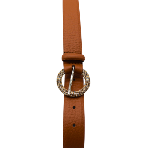 Cintura Donna Orciani in morbida pelle soft. Bellissima fibbia argento e oro con finiture puntinate. La cintura è costruita su una base in pregiato vitello con lavorazione in pelle Bull Soft che rende questo accessorio adatto a qualsiasi look casual chic. 100% Made in Italy.