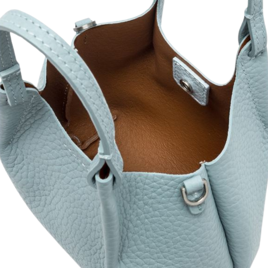 L'icona del brand DUA è realizzata in pelle bubble double. Dotata di un monoscomparto sfoderato, profili superiori in pelle martellata e doppi manici in tono. Pratica ed essenziale, è la borsa perfetta per esaltare ogni tuo look. Può essere portata a mano o a spalla.